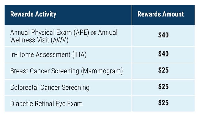 Did you know your clients can earn up to $155 in rewards by completing annual wellness visits and other health screenings? Getting regular health exams and screenings can help detect health issues early. By completing an online form, members can earn rewards which are added to their AZ Blue OTC/Rewards Benefits Card Mastercard® and can be used at any location that accepts Mastercard. For frequently asked questions about rewards, click here.
